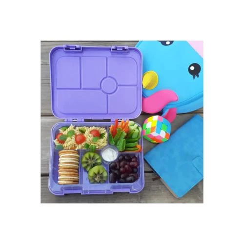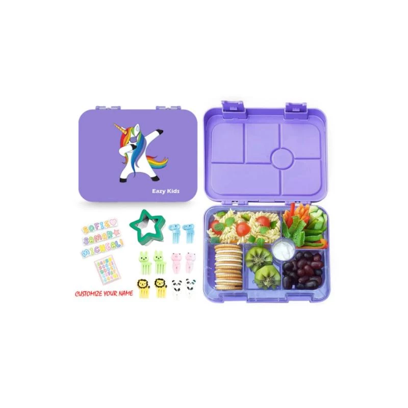 Bento lunch box unicorn, kids bento box purple, 6 compartment lunch box, BPA free lunch box, Tritan lunch box, leakproof kids lunch box, sandwich cutter lunch box, animal fruit picks, dishwasher safe lunch box, microwave safe kids lunchbox