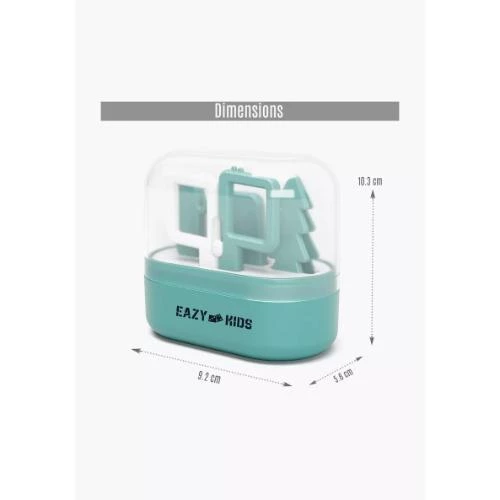 The Eazy Kids 6 in 1 Baby Nail Care Set by SAMBOX in vibrant green is a rust-free, safe, and complete manicure, pedicure, and ear care kit specially designed for newborns, infants, and children aged 0 to 4 years. The arc-shaped scissor head prevents scratching the baby's delicate skin and includes a safety lock to stop the baby from opening it unsupervised. The curved nail clippers have zero gaps to smoothly trim nails without burrs or scratches, featuring fixed rotating handles for safety and ease. Safe round-tip tweezers hygienically grasp nasal secretions without risk, while the ear cleaning spoon with built-in light allows clear, safe removal of ear canal secretions. Two delicately frosted nail filers polish away sharp edges for gentle nail care. Made of washable TPE, ABS, and stainless steel materials, the lightweight 260g kit is easy to disinfect and store in the included compact box. Ideal as a baby shower gift or essential grooming kit for your little one.