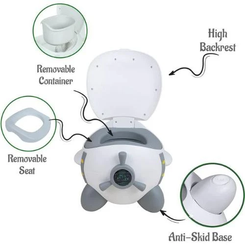 airplane potty seat, toddler potty training toilet, grey potty chair for kids, eazy kids potty seat, removable potty container, non-slip toddler toilet, kids training toilet, potty with backrest, durable potty for toddlers, fun potty seat design