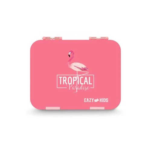 eazy kids bento box tropical pink, convertible bento lunch box, 6 compartment kids lunch box, 4 compartment bento box, tritan kids lunch box, leakproof bento box for school, insulated lunch bag combo, cute pink lunch box set, school lunch organizer, toddler lunch box with strap