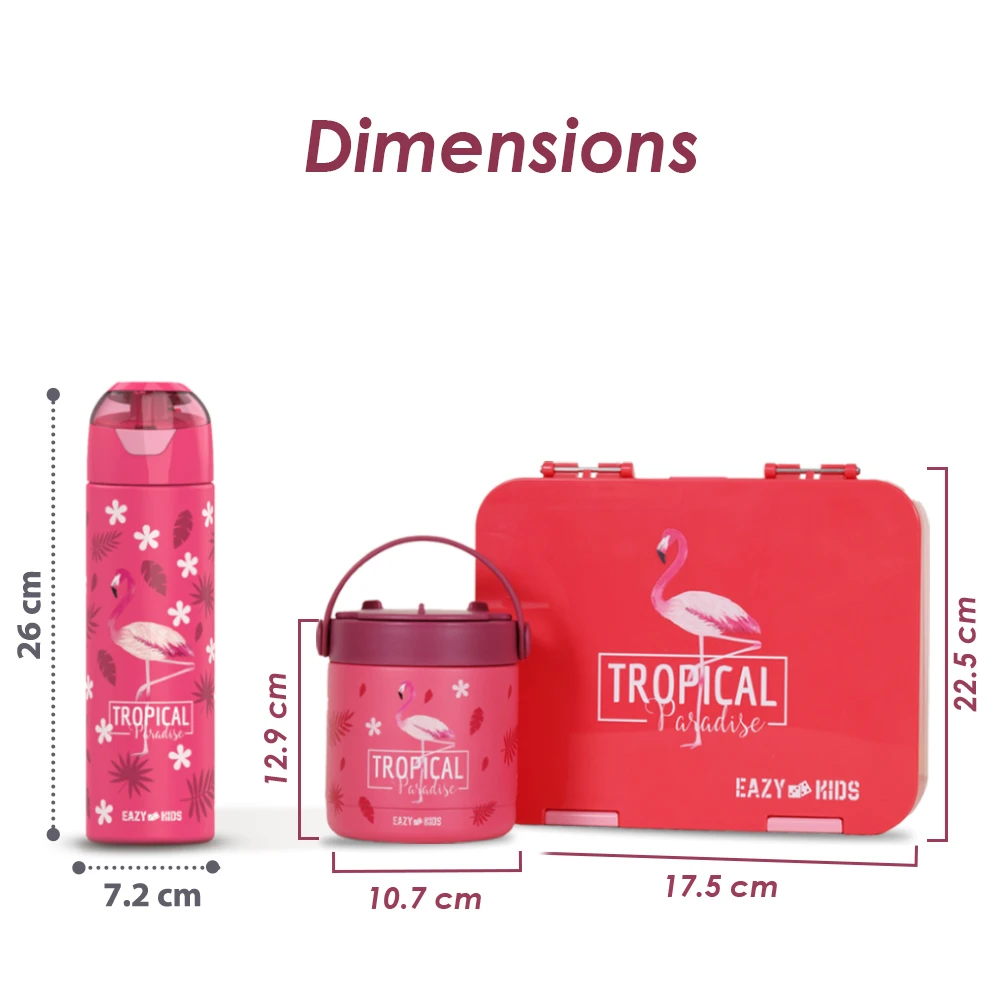 Eazy Kids 6 & 4 Convertible Bento Lunch Box with Stainless Steel 640ml Water Bottle and Sandwich Cutter Set & Food Jar - Tropical Pink