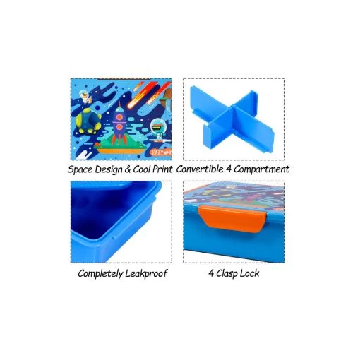 convertible bento lunch box, kids lunch box 850ml, leakproof school lunch box, blue lunch box for boys, BPA free kids tiffin, eco-friendly lunch container, compartment lunch box for school, microwave safe bento box, space theme lunch box, Eazy Kids lunchbox