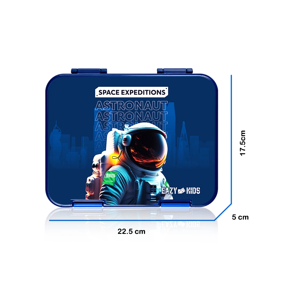 ksa edition lunch box, space theme bento, convertible food tray, blue bento box, sandwich cutter set, leak proof lunch box, cultural design lunch gear, fun food container, kids meal organizer, eazy kids lunch box, reusable bento tray, food safe plastic, easy wash bento, creative food presentation, school meal box, stylish lunch set, space inspired gear, compact food tray, durable lunch box, everyday mealtime tool
