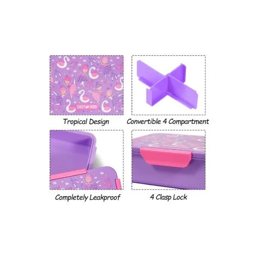eazy kids lunch box purple, tropical bento lunch box, kids tiffin leakproof, BPA free lunch container, convertible kids lunch box, eco friendly school box, microwave safe bento, stylish lunch box for girls, back to school lunch gear, lunch box with compartments
