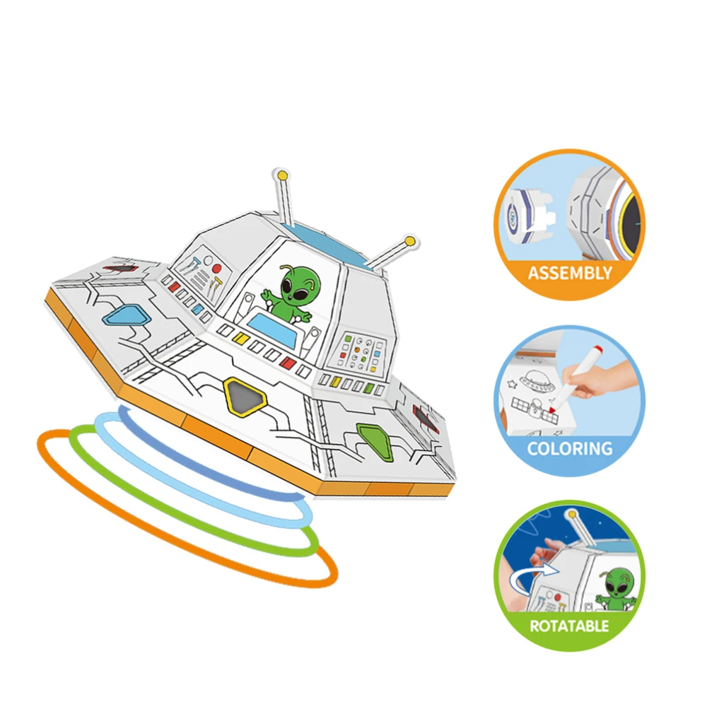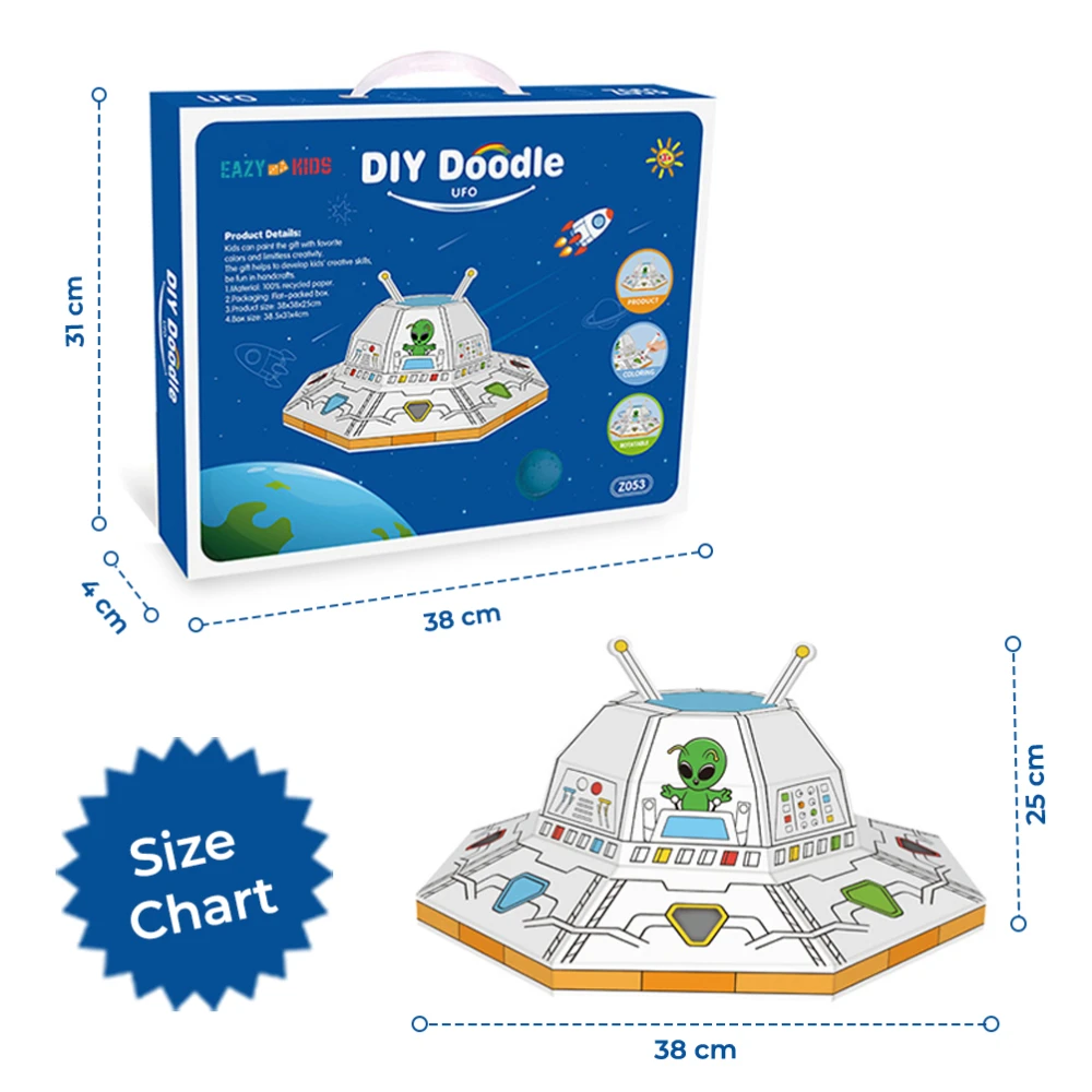 diy craft kit, ufo craft kit, kids art set, creative activity kit, coloring craft set, space theme craft, kids age 3+, craft gift for kids, art and craft toy, imaginative play kit, kids coloring set, preschool activity kit, craft toy set, creative learning toy, indoor kids activity, space craft for kids, eazy kids craft set, fun craft kit, color your own toy, kids diy project