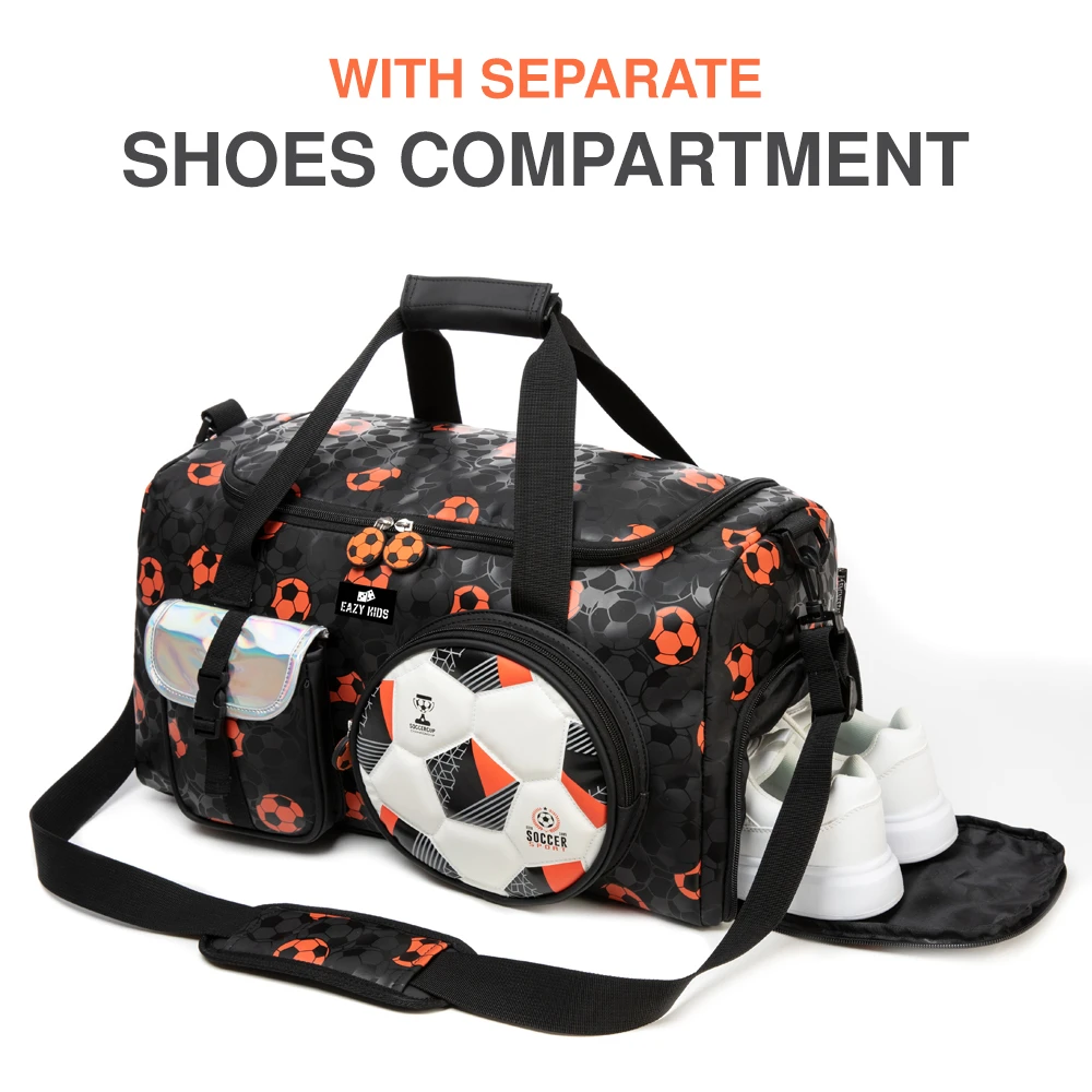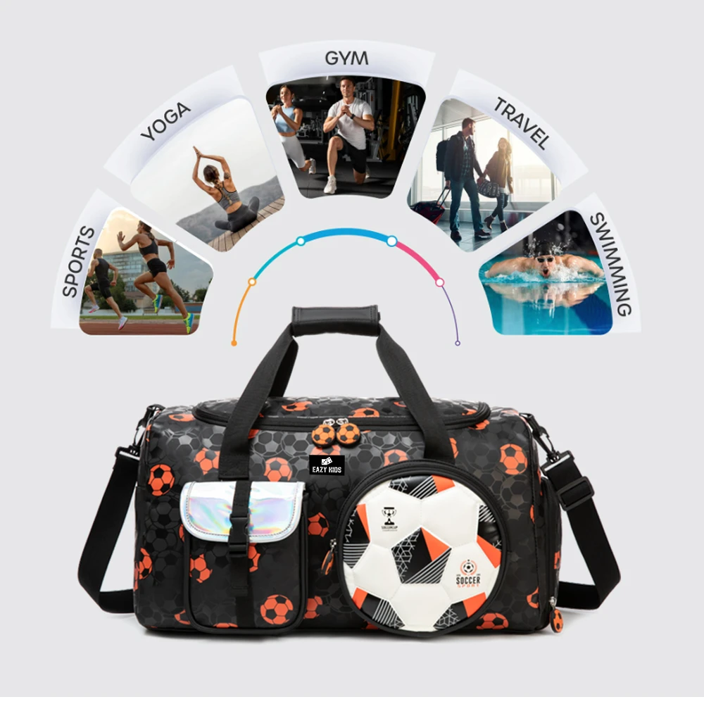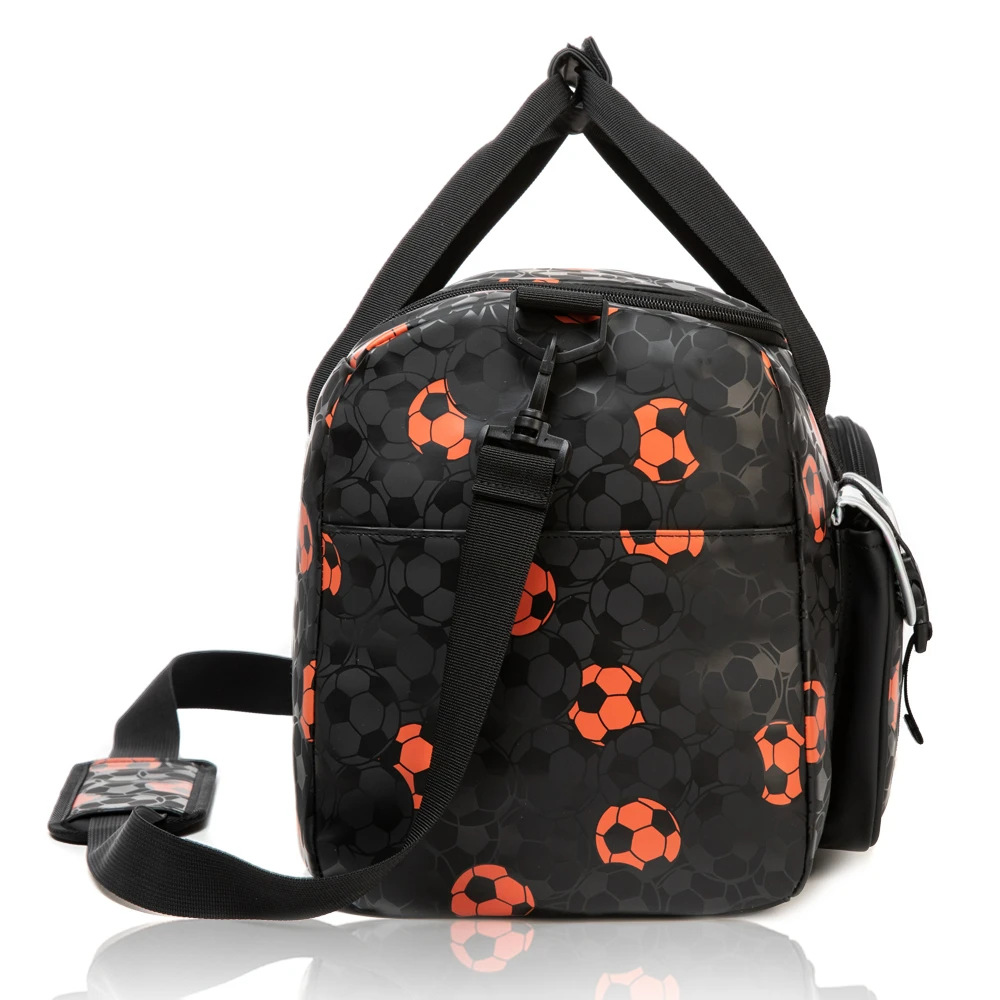 It has both carry handles and an adjustable shoulder strap for versatile carrying options. With its sporty design and practical storage, this duffle is an ideal choice for football lovers or kids on the go.