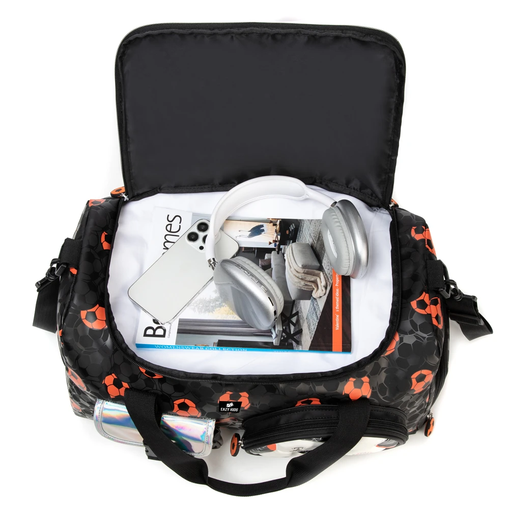 eazy kids duffle bag,football black duffle,sports duffle bag,kids sports bag,travel duffle bag,30l duffle bag,lightweight kids duffle,durable duffle for kids,weekend travel bag,kids football gear bag,school trip duffle,adjustable strap duffle bag,kids sports accessories,spacious kids duffle