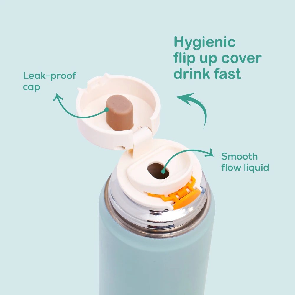 Designed for hydration on the go, the Eazy Kids insulated sports water bottle in green offers both functionality and vibrant style. With a 450ml capacity, it features a built-in straw for easy sipping, a leakproof flip-top lid, and double-wall insulation to keep beverages hot or cold for hours. Its lightweight design and carry strap make it perfect for everyday adventures, while the slim shape fits easily into side pockets or lunch bags. Easy to clean and built for daily use, this bottle combines convenience with durability.