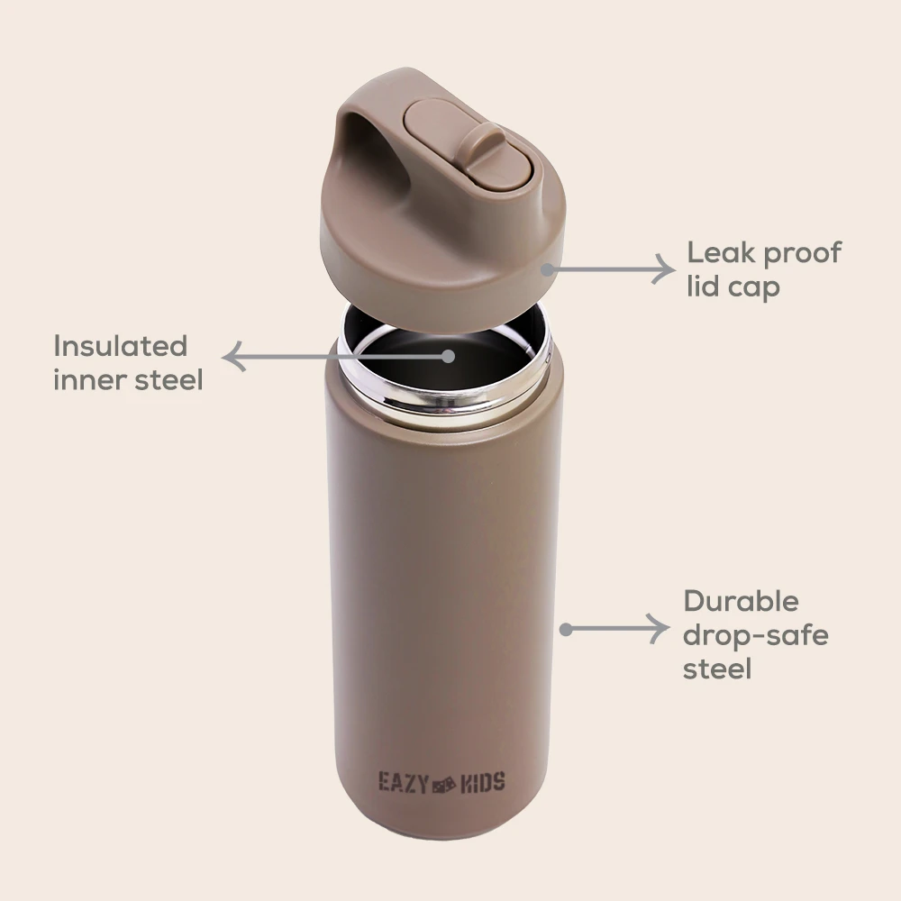 Eazy Kids Insulated Sports Water Bottle - Khaki, 550ml