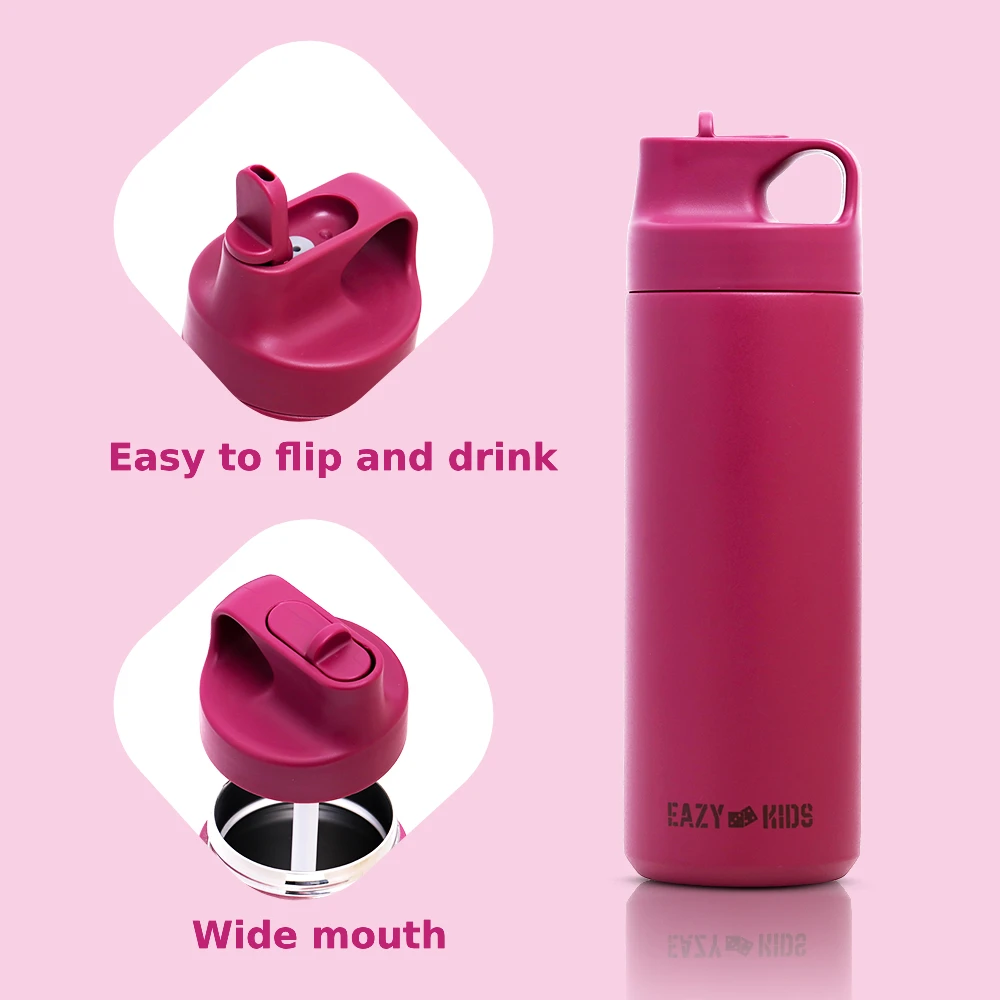 insulated sports bottle, pink water bottle, 550ml bottle, straw lid, leakproof bottle, bpa free bottle, reusable bottle, kids water bottle, portable hydration, travel drinkware, school bottle, hot and cold bottle, flip lid bottle, easy clean drinkware