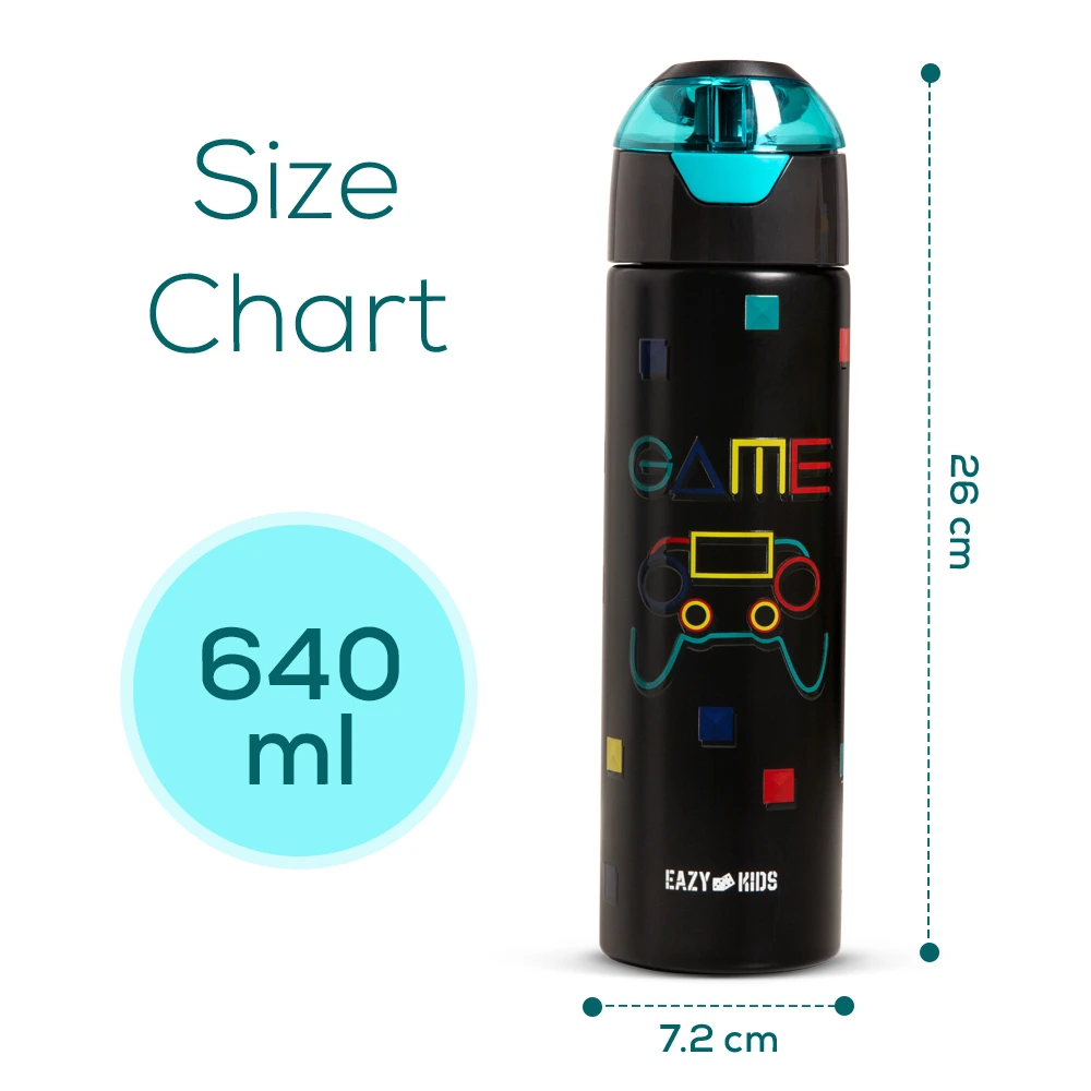 eazy kids water bottle,insulated stainless steel bottle,gamer black water bottle,kids sports bottle,bpa free kids bottle,leak proof kids bottle,spray feature water bottle,cold drink bottle for kids,durable kids water bottle,school water bottle,travel water bottle,kids hydration bottle,double wall steel bottle,eco friendly kids bottle,reusable kids bottle,large capacity kids bottle,outdoor sports water bottle,kids drinkware,stylish kids bottle