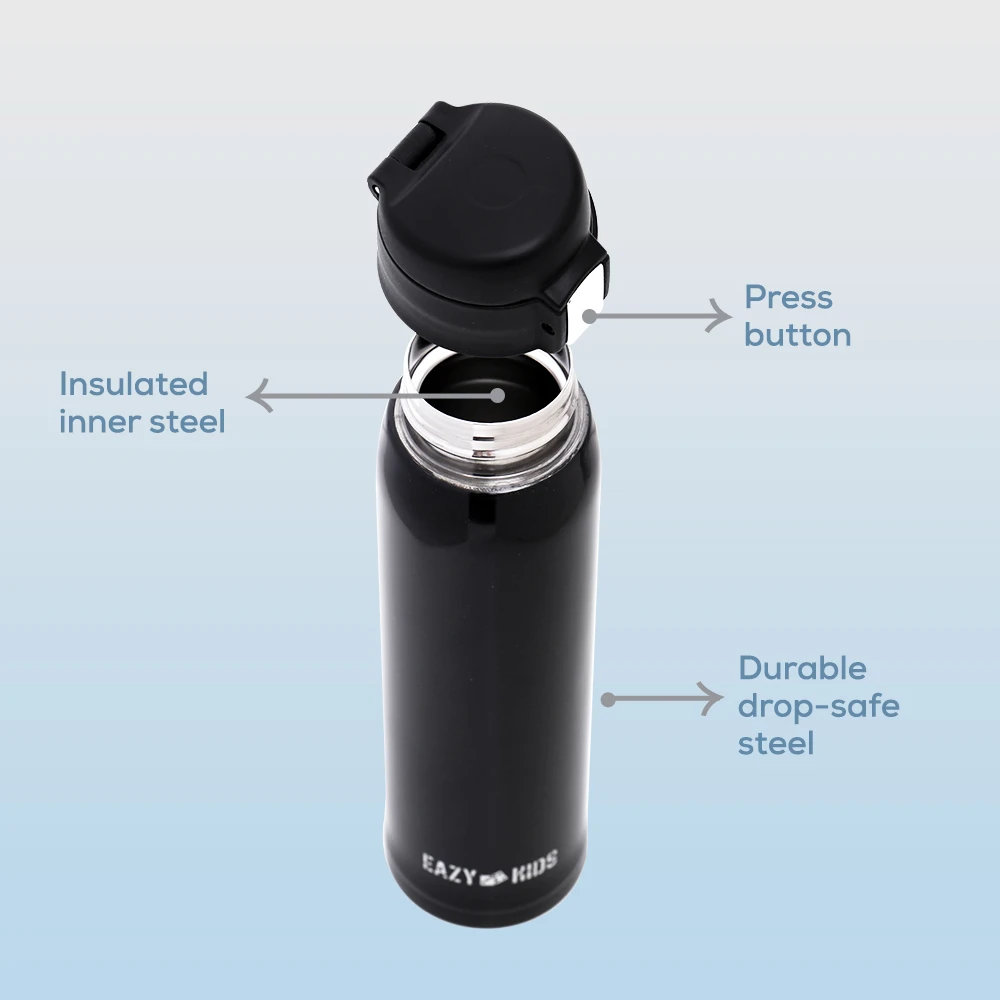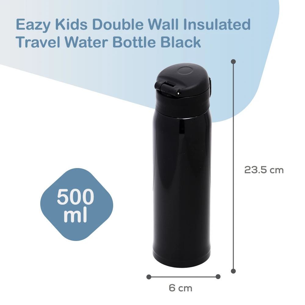 Eazy Kids Insulated Travel Water Bottle - Black, 500ml