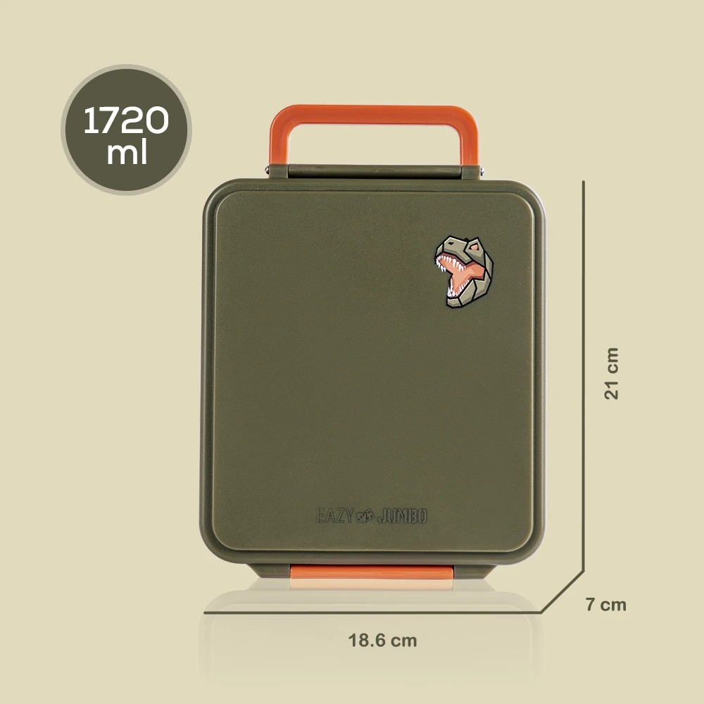 Eazy Kids Jumbo Bento Lunch Box with Thermos & Dip Jar - Green