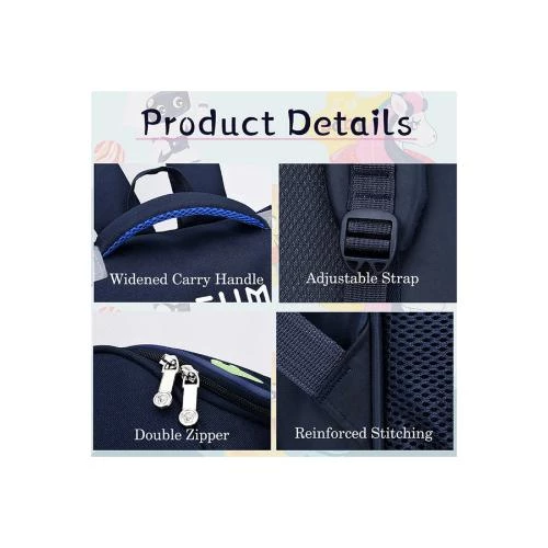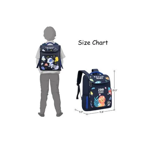 Eazy Kids Leo School Bag -Blue Durable Lion Print Backpack with Reflective Strip