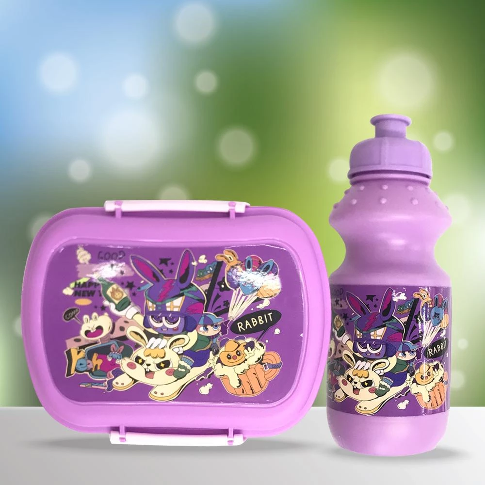 lunch box set, kids lunch box and bottle, Eazy Kids lunchware, purple lunch set, school lunch box, food grade lunch box, leakproof kids bottle, rabbit design lunch set, kids school essentials, BPA free lunch kit