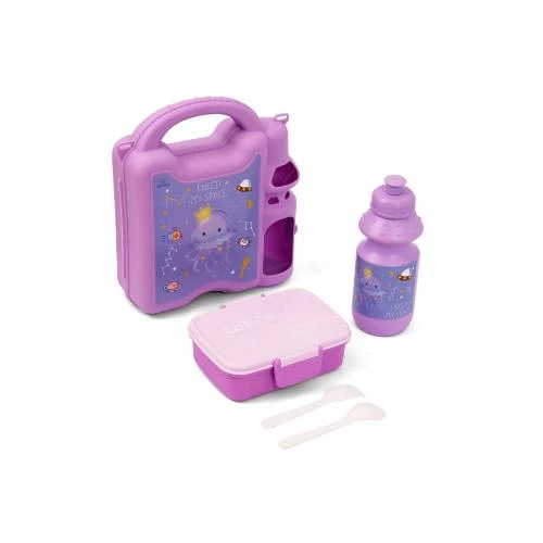 Brighten up your childs mealtime with the vibrant purple Eazy Kids Lunch Box with Water Bottle by SAMBOX, designed to make eating fun and easy. Crafted from premium BPA and BPS-free plastic, this sturdy lunch box features one spacious compartment perfect for balanced meals and includes a high-quality spoon and fork for convenience. The matching water bottle adds extra hydration on the go. Lightweight, leakproof, and easy to clean, this lunch box is ideal for school, picnics, or outings, combining practicality and style in a beautiful purple shade.