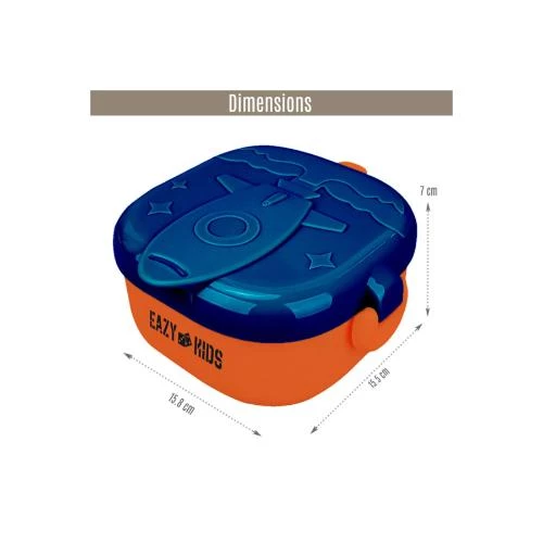 Make lunchtime an exciting adventure with the Eazy Kids Rocket Lunch Box Meal Set in a sleek blue finish by SAMBOX. Specially designed for preschoolers aged 05 years, this charming rocket-themed feeding set is made from 100% BPA-free, non-toxic, food-grade, eco-friendly PP material. The set includes a 600ml lunch box featuring a 370ml internal bowl, a kid-safe pair of scissors for prepping bite-sized meals or sandwiches, and a matching spoon. Built with a bilateral buckle lock and a silicone-lined top layer, the box is fully leakproof, ensuring mess-free travel. The convenient ring handle makes it easy for toddlers to carry, and the entire set is freezer safe. Perfect for on-the-go, daycare, or school, this lightweight lunch box makes nutritious meals more fun and accessible.