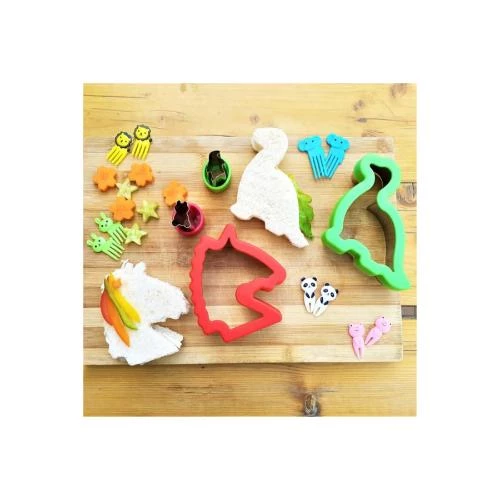 sandwich cutter combo, stainless steel food cutters, bento lunch accessories, cookie cutter set for kids, egg molds for bento box, unicorn food cutter, dinosaur sandwich tools, vegetable cutter for lunch box, fun lunch tools, fruit picks animal shaped