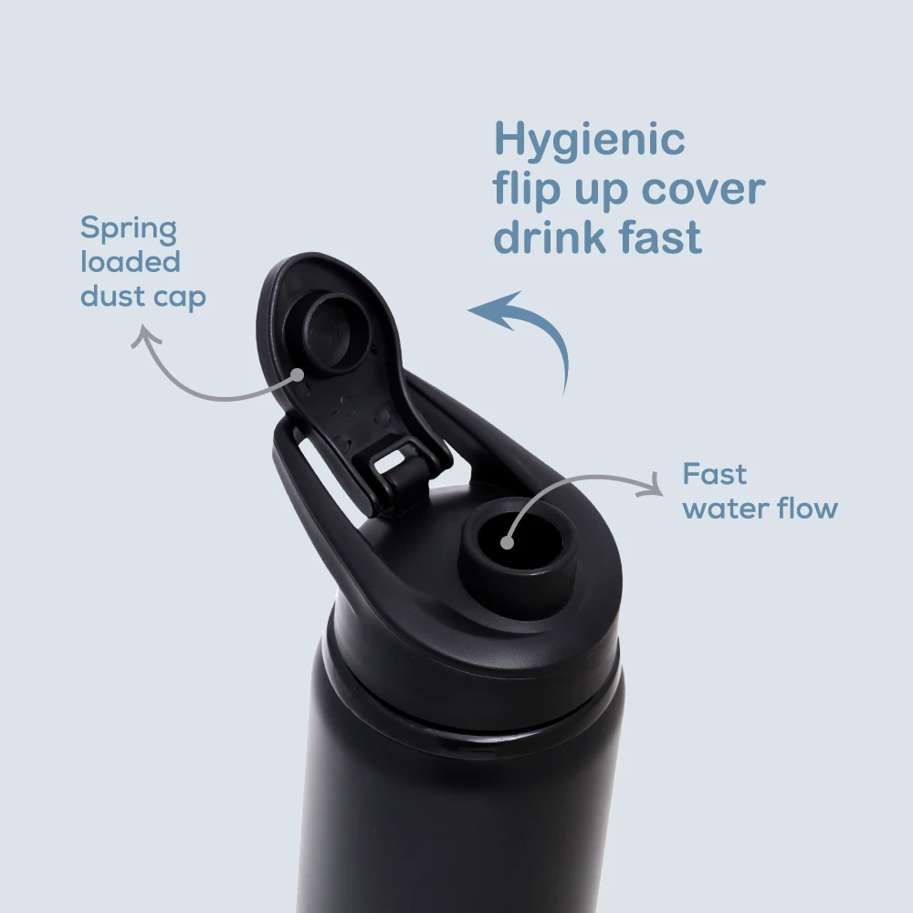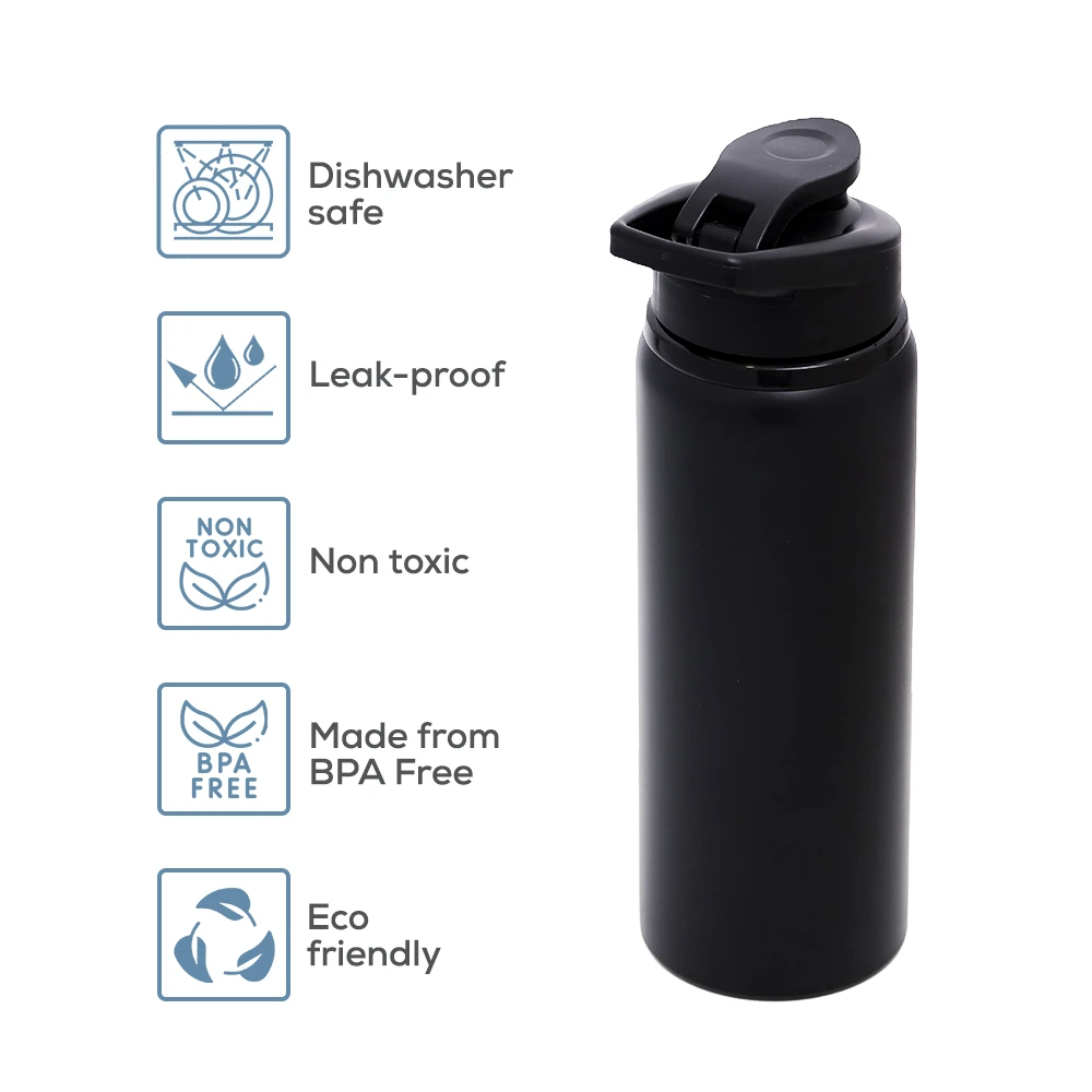 stainless steel bottle, black bottle, 700ml bottle, sports water bottle, leak‑proof design, food grade steel, bpa free, phthalate free, eco friendly bottle, wide mouth opening, easy to clean, sipper lid, reusable bottle, durable bottle, lightweight bottle, hydration bottle, everyday water bottle, school water bottle, travel bottle, outdoor bottle