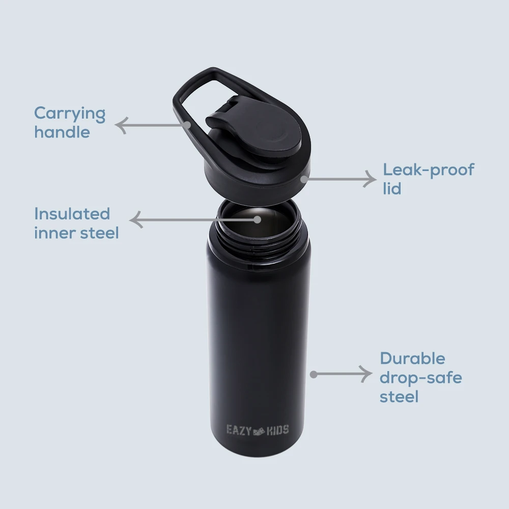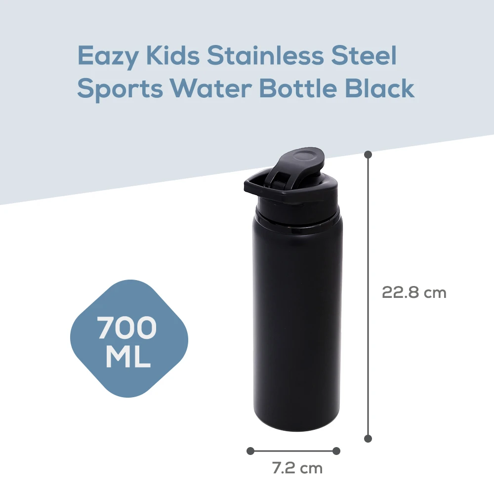 Eazy Kids Stainless Steel Sports Water Bottle - Black, 700ml