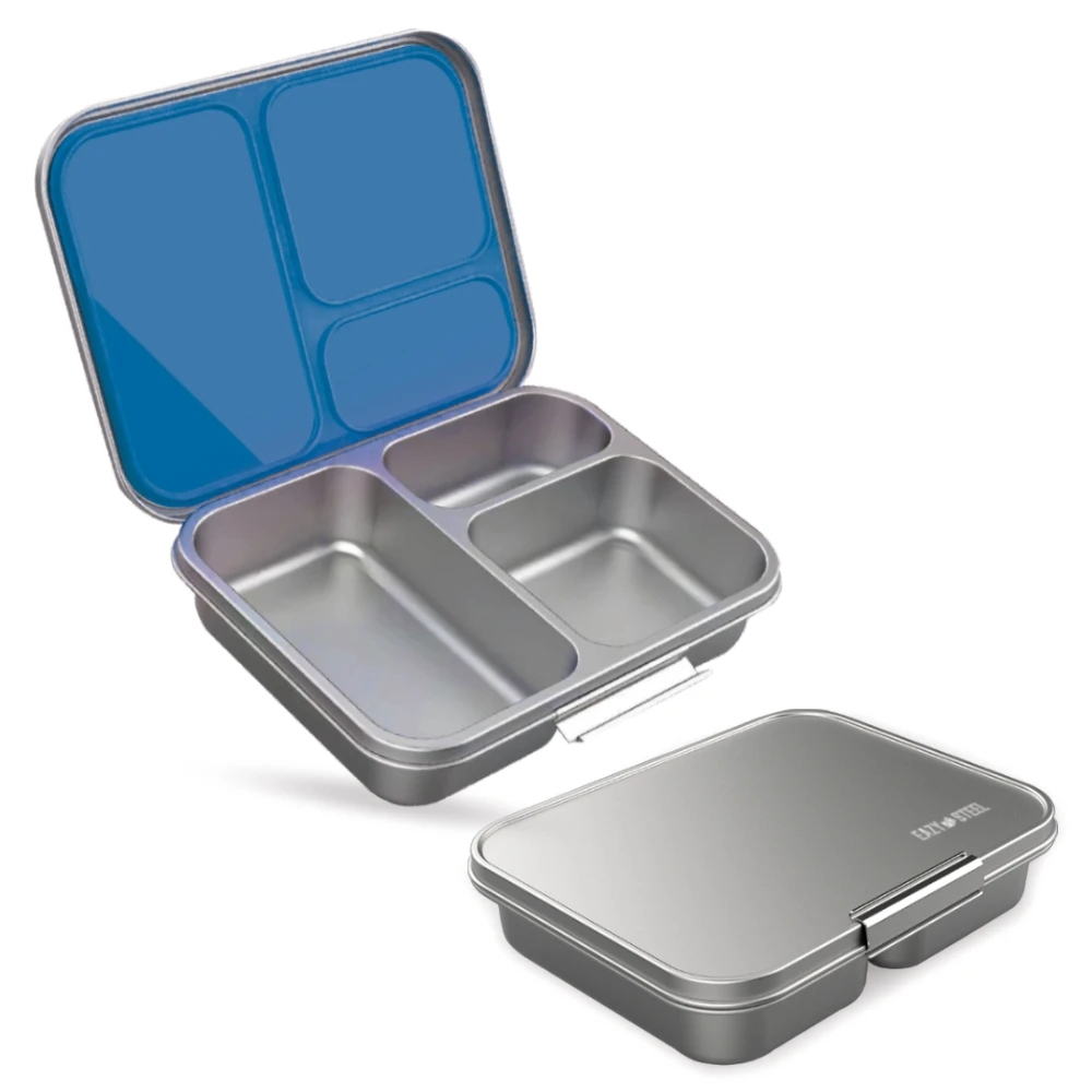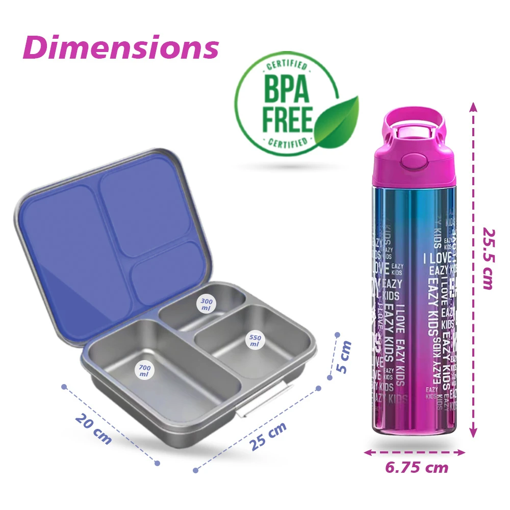 Eazy Kids 3 Compartment Bento Steel Lunch Box with Stainless Steel 530ml Water Bottle - Purple