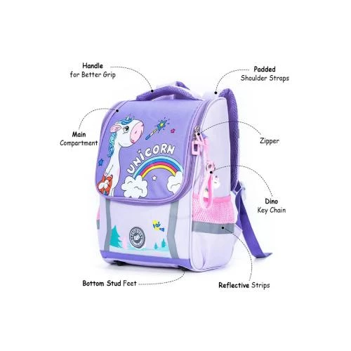 Eazy Kids Unicorn School Bag -Prince Purple Backpack with Keychain by SAMBOX