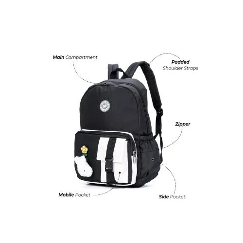 Eazy Kids Vogue School Bag with 6-Compartment Leakproof Bento Lunch Box -Black Combo Set