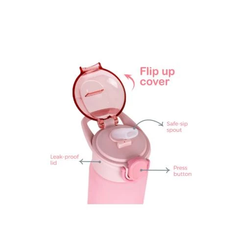 eazy kids pink water bottle, kids water bottle with handle, sambox kids bottle 500ml, leakproof kids drink bottle, one-touch lid water bottle, plastic water bottle pink, portable kids hydration bottle, reusable water bottle for children, easy clean kids bottle, bpa free kids water bottle