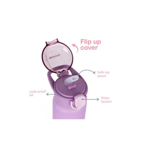 eazy kids purple water bottle, kids water bottle with handle, sambox kids bottle 500ml, leakproof kids drink bottle, one-touch lid water bottle, plastic water bottle purple, portable kids hydration bottle, reusable water bottle for children, easy clean kids bottle, bpa free kids water bottle
