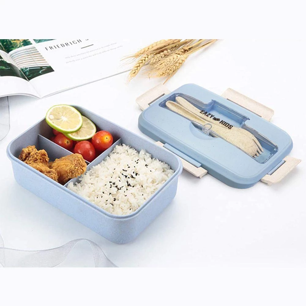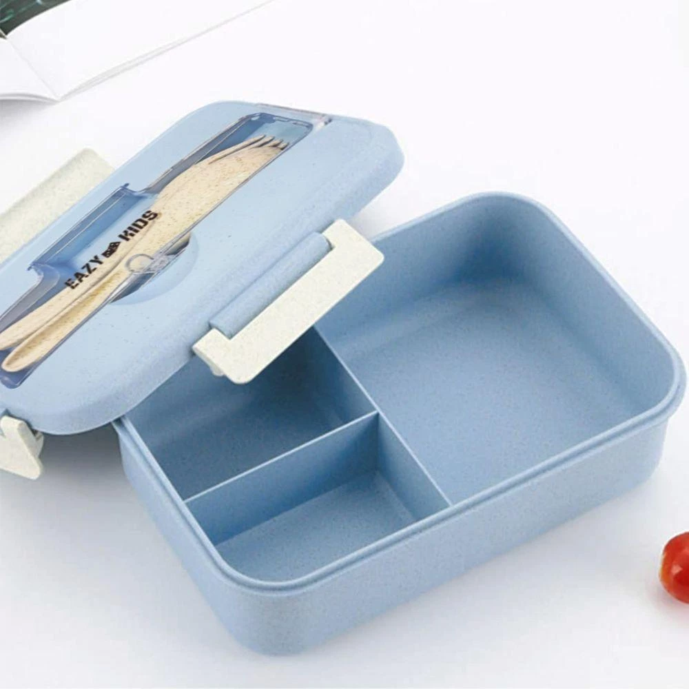 bento lunch box blue, wheat straw lunch box, eco bento container, leakproof lunch box, school lunch box for kids, 3 compartment lunch box, BPA free lunch box, kids bento lunch box, reusable food container, eazy kids lunch box