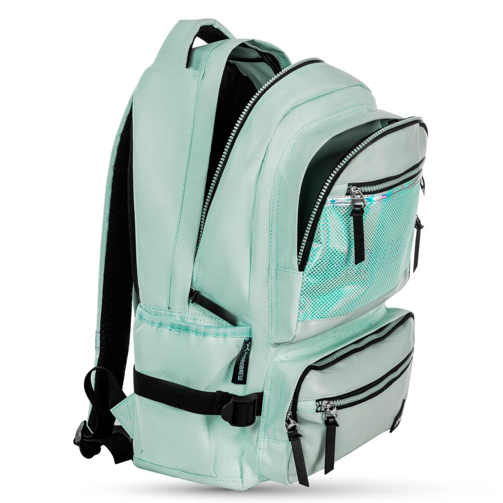 The Hydrobrew 18" School Backpack in fresh green adds a pop of nature-inspired color to any student’s school gear. With its spacious main compartment, multiple internal pockets, and front zipper pouches, it keeps books, stationery, and gadgets neatly organized. The lively green design stands out while maintaining a clean and modern look that appeals to both boys and girls.