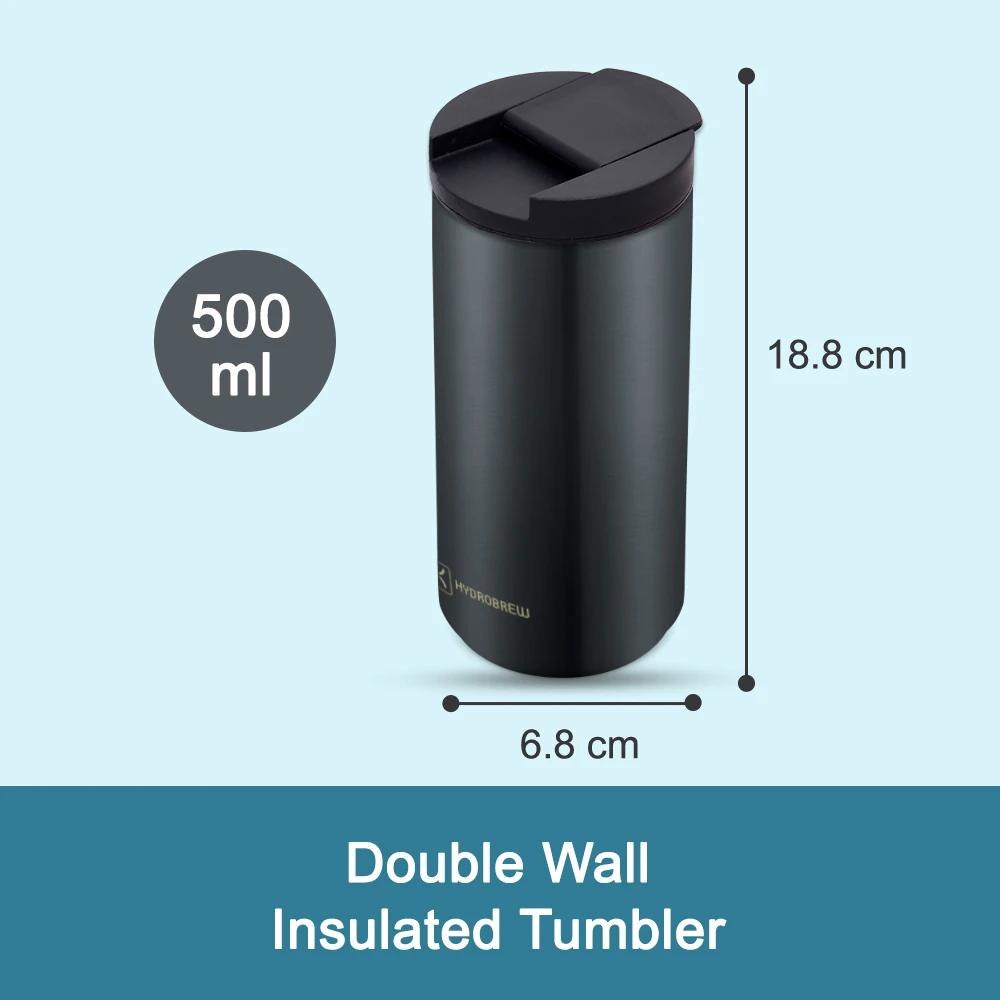 HYDROBREW Double Wall Insulated Tumbler Water Bottle - Black 500ml