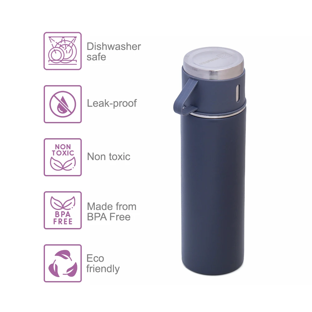 grey vacuum flask, insulated drinkware, flask with two cups, thermal water bottle, hot and cold retention, leakproof flask, travel flask set, hydrobrew flask, double wall insulation, matte grey thermos, durable stainless steel interior, portable hydration gear, bpa free thermos, outdoor drink set, compact thermal bottle, reusable drink bottle, stylish flask set, heat retention flask, modern travel flask