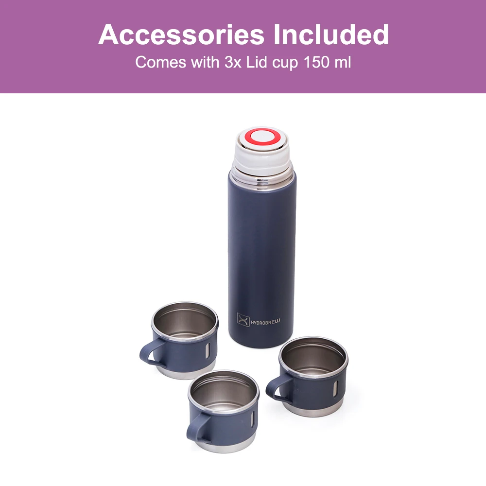 HYDROBREW Insulated 500ml Vacuum Flask with 2×150ml Cups - Grey