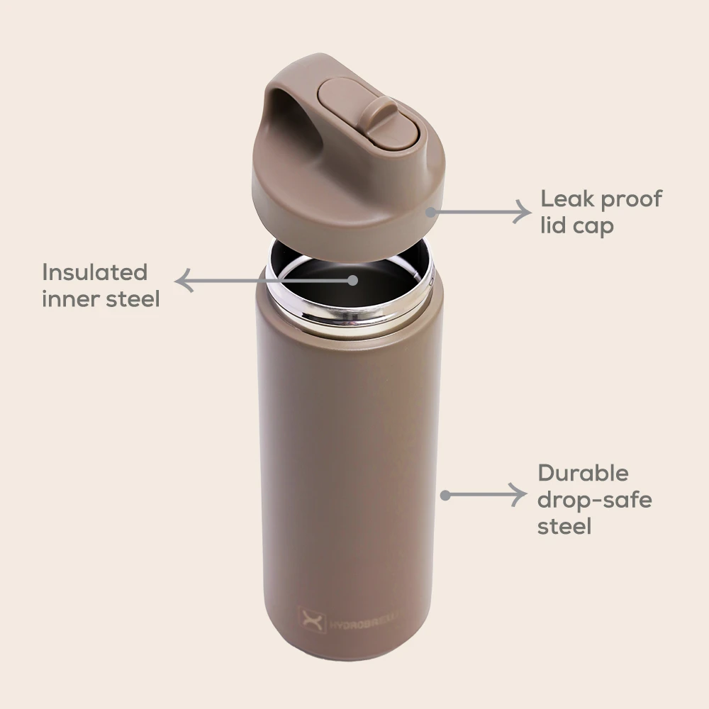 HYDROBREW Insulated Sports Water Bottle - Khaki, 550ml