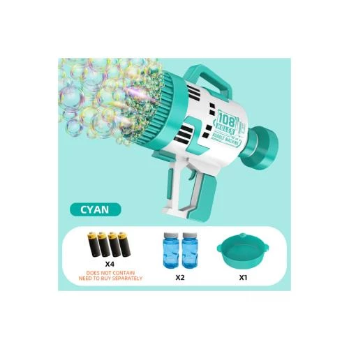 Little Story 108 Holes Battery Operated Bubble Machine Gun with Light -Cyan