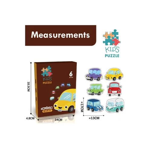 car puzzle for toddlers, vehicle matching puzzle, kids educational board game, 6 in 1 puzzle set, toddler brain development toy, early learning car game, kids motor skills activity, preschool puzzle toy, toddler gift puzzle, colorful car puzzle