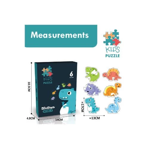 dinosaur puzzle for toddlers, 6 in 1 puzzle game, kids educational matching game, toddler learning toy, preschool puzzle activity, eco friendly puzzle set, brain development game, dinosaur themed puzzle, puzzle gift for 2 year old, toddler cognitive skills toy