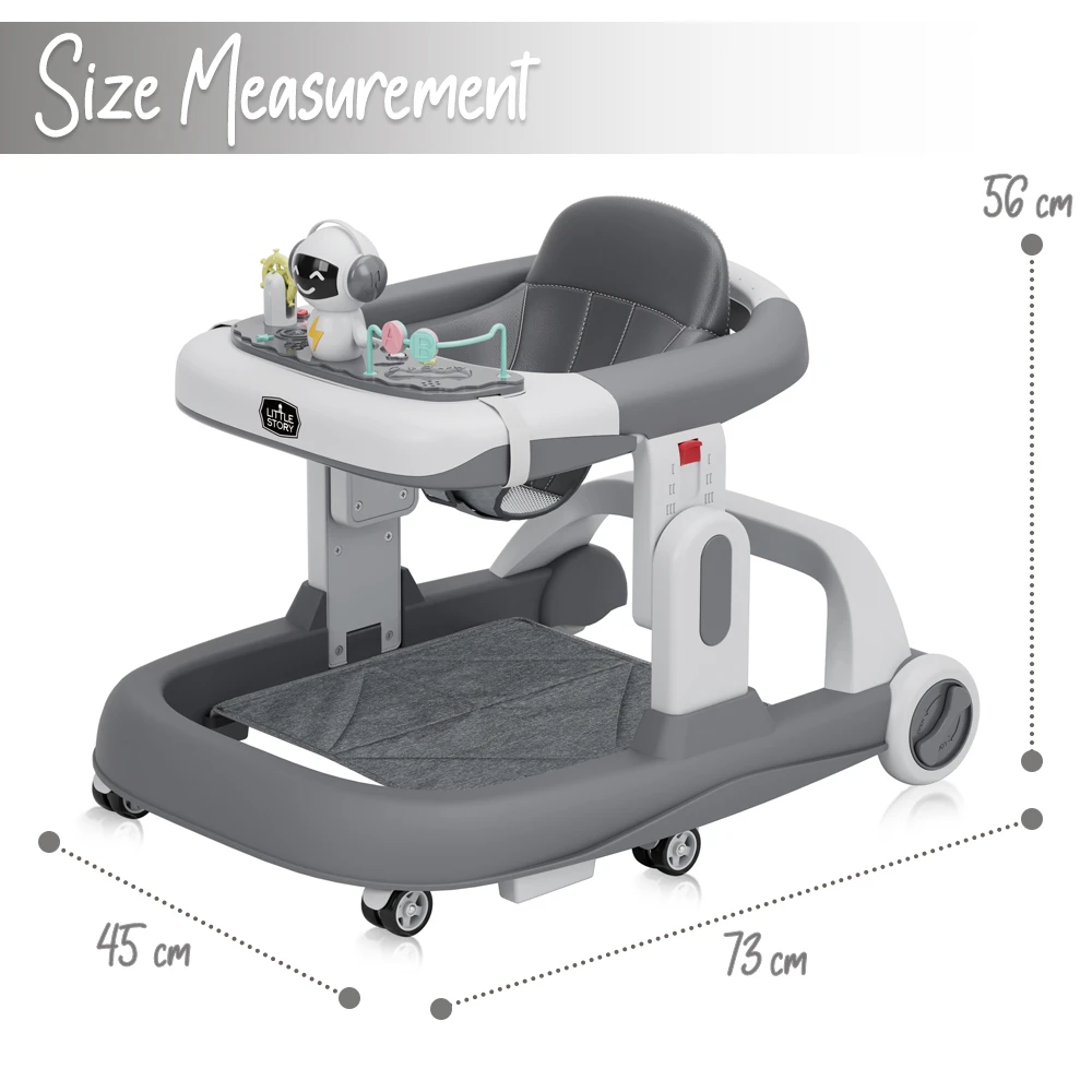 The Little Story Adjustable Baby Walker offers a fun and safe way to support your baby’s first steps. Built with a foldable and lightweight frame, this walker is easy to store and transport, making it perfect for homes with limited space. Its ergonomic seat provides comfort, while the height adjustment feature ensures it grows with your baby. Equipped with interactive toys on the front tray, it keeps your child engaged while encouraging motor skill development. Certified to EN1273 standards, this walker prioritizes both safety and functionality, giving parents peace of mind while their baby learns to walk confidently.