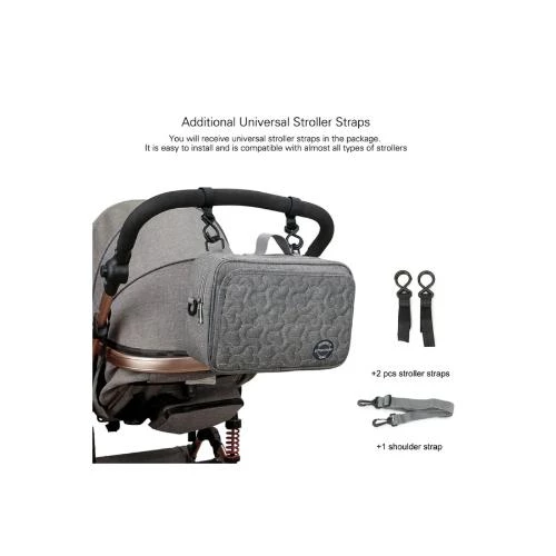 Elevate your parenting routine with the Little Story Baby Diaper Changing Clutch Kit in Quilted Grey by SAMBOX-your compact yet spacious solution for on-the-go diaper duty. With a sleek quilted finish and crafted from durable 600D polyester, this clutch offers a refined, minimalist look while delivering full functionality. It features 8 total pockets to organize more than 6 diapers, baby ointments, and even personal items like keys or phones in the front zipper compartment. A convenient tissue pocket in the front allows quick access to wipes during emergencies. The lightweight (260g) design is ideal for everyday travel and includes a detachable shoulder strap (adjustable from 60105cm) and 2 stroller straps for added portability. Whether clipped to your stroller or used as a cosmetic or accessory bag inside your diaper backpack, this 5.5L clutch keeps essentials neat, accessible, and stylish.