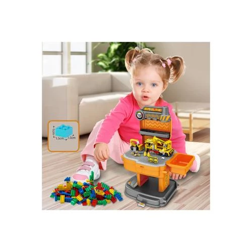 construction site toy set, role play toy set, jcb toy set for kids, construction block toy, educational toys for boys, pretend play construction kit, toy blocks with school bag, kids engineering toy, diy building set for toddlers, SAMBOX toy set