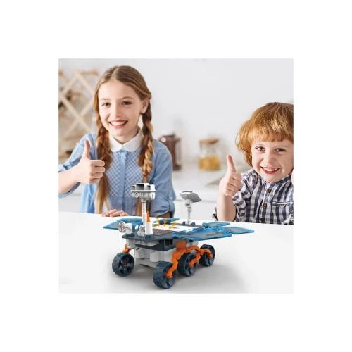 The Little Story DIY Solar Mars Exploration Rover by SAMBOX is a fascinating STEM educational toy designed for children aged 8 and above to inspire curiosity about space and technology. This blue Mars Rover kit includes 46 durable, high-quality ABS pieces for DIY self-assembly, helping kids develop critical problem-solving and independent thinking skills. Equipped with dual power modes-solar energy or 1 AA battery (not included)-this rover teaches children about mechanical transmission, motion mechanics, and energy transformation, including solar and wind power. Suitable for indoor and outdoor play, it encourages learning about physics, machinery, and new energy while promoting environmental awareness. This EN71 certified product is a perfect gift to foster knowledge, exploration, and innovation in young minds.