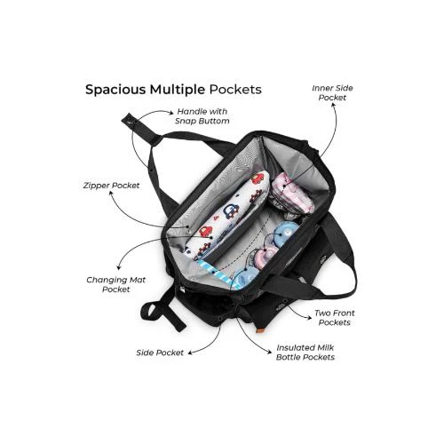 Little Story Elite Diaper Bag with Stroller Hooks & Changing Mat -Black