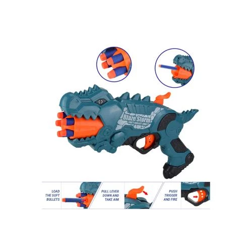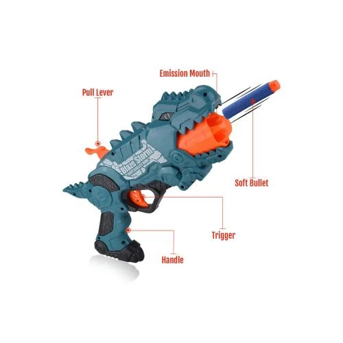 dinosaur toy bullet gun, kids soft foam dart blaster, manual dino bullet gun, foam dart toy gun for kids, safe shooting toy dinosaur gun, dinosaur foam dart blaster, green kids bullet toy, toy gun for boys 8 years+, soft foam darts blaster, kids gift toy gun with bullets