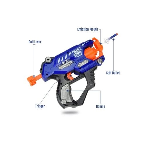 Get ready for action-packed fun with the Little Story Kids Manual Soft Bullet Gun by SAMBOX, designed for thrilling indoor play. This sturdy ABS-built blaster comes with 10 soft foam bullets, allowing kids to load up to 5 bullets at once and fire away at imaginary targets for exciting solo or group play. Easy to use-simply load, pull back the handle, and press the trigger-this battery-free toy gun is great for developing hand-eye coordination and encouraging active play. The soft darts are made of kid-safe foam, making it safe for children 8 years and above. A perfect gift for birthdays, holidays, or fun family competitions, this foam dart blaster is big enough for both kids and adults to enjoy. Please note: Although bullets are soft, avoid aiming at the face or eyes for safety.