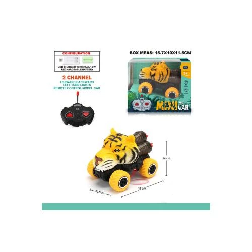 kids remote control car, tiger car toy, little story tiger car, 2 channel remote car, yellow remote car, shockproof toy car, smooth terrain car, eco-friendly kids toy, birthday gift toy, christmas stocking present