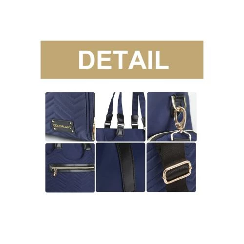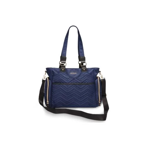 The Little Story Matilda Diaper Bag in stylish navy blue by Colorland offers the perfect blend of style, durability, and functionality for busy parents. Crafted with high-quality waterproof polyester, this spacious bag features 7 compartments and 11 pockets including one insulated tin-foiled bottle pocket to keep milk warm or cool. The wide opening with secure zipped top closure and anti-skid base panel provides easy access and stability while the adjustable, padded shoulder strap and detachable side strap make carrying comfortable. Designed for effortless organization, it includes a large, luxury padded changing mat thats machine washable and ready for quick diaper changes on the go. Finished with beautiful faux leather hardware accents, this bag is both practical and elegant, ideal for parents who want a reliable, easy-to-clean diaper bag with ample storage for all baby essentials.