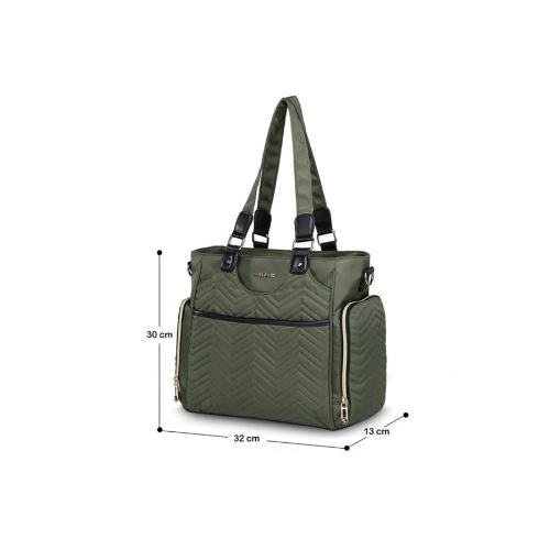 Little Story Matilda Diaper Bag - Olive Green with Large Changing Mat & Multiple Pockets