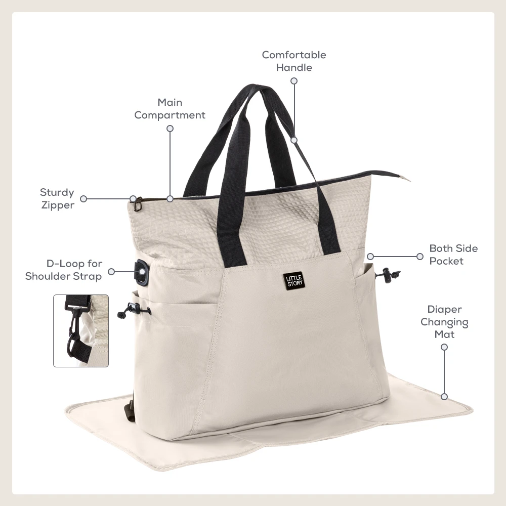 Little Story Mommy Diaper Bag with Changing Mat - Beige