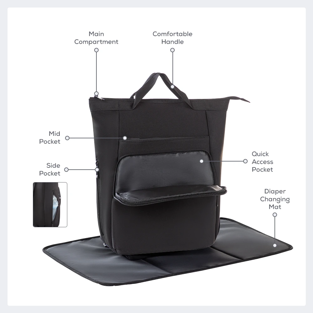 Little Story Mommy Diaper Bag with Changing Mat - Black